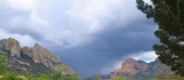 start in July. Sunny mornings, clouds build up, rains in the late afternoon. Sometimes, if you are lucky, you get to view incredible electric storms. It is very pleasant here then and if its too warm, drive a few minutes and you are at 8000 feet hiking in the trees and looking for that Red-faced Warbler.